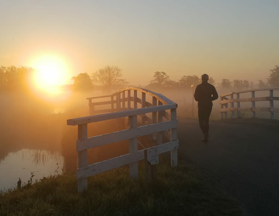“Wekelijks loop ik minimaal 3x. Het liefst over onverharde paden. Ik doe wat op dat moment goed voelt voor mijn lijf. Het hardlopen en het wandelen wissel ik af met oefeningen. Maar ook met het genieten van de omgeving. Zo is mijn rustmoment elke keer anders en helemaal oké. Ik voel me weer helemaal relaxed en opgeladen als ik terug ben.